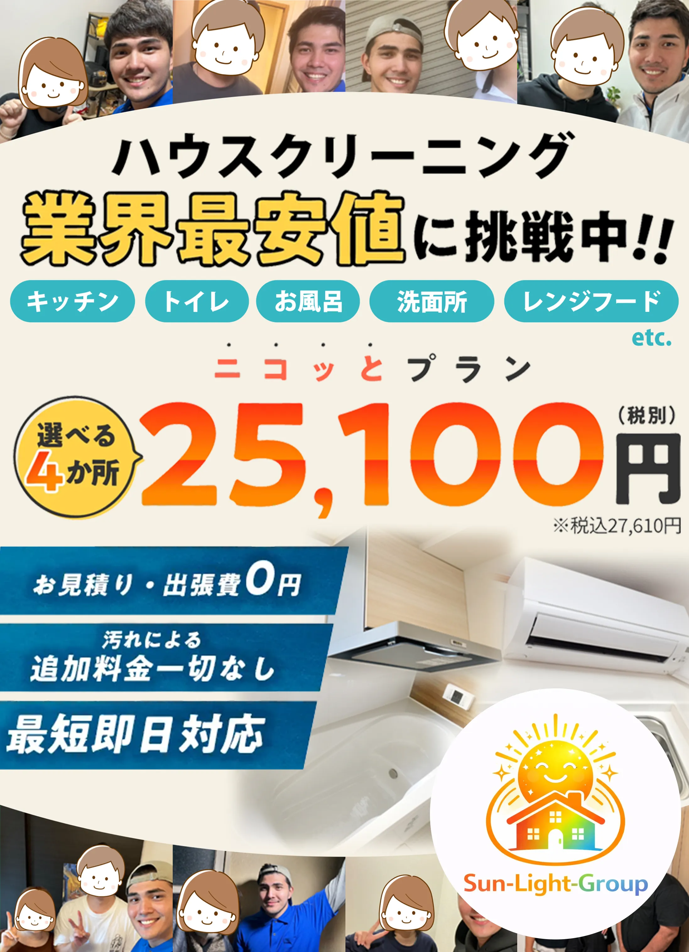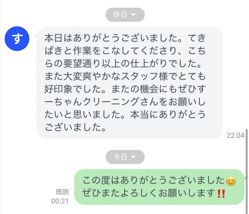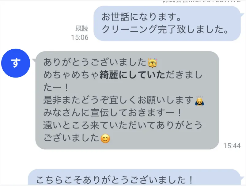 本当に頼みやすいハウスクリーニング会社さんです。隅々までピカピカで、エアコンもキレイになりワンちゃんも大喜びです。また困ったことがあれば相談したいです。サンライトクリーン最高♪